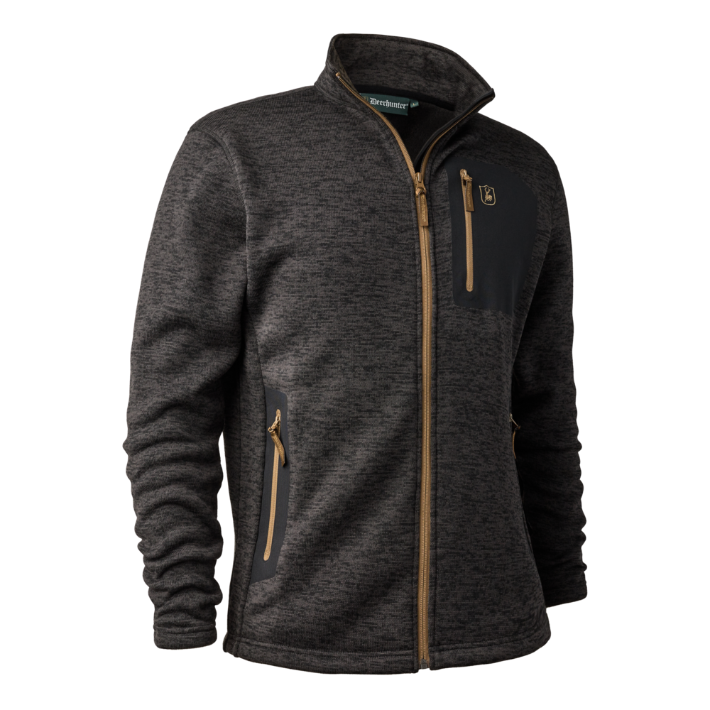 Med gennemgående lynlås, brystlomme med lynlås og to rummelige forlommer, får du både funktionalitet og stil i ét. Den fine struktur i strikken giver jakken et elegant, tidløst udtryk, der gør den velegnet til både fritid, jagt og hverdagsbrug.